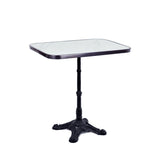 This rectangular French Bistro table is ideal for hospitality use. The ceramic top lends itself to daily restaurant and bar use. The compressed stone is more durable than marble, making it less likely to break or crack. It is also scratch-resistant and virtually stain-proof. The table is a variation of tables used in cafés and restaurants in late 19th—and early 20th-century France.