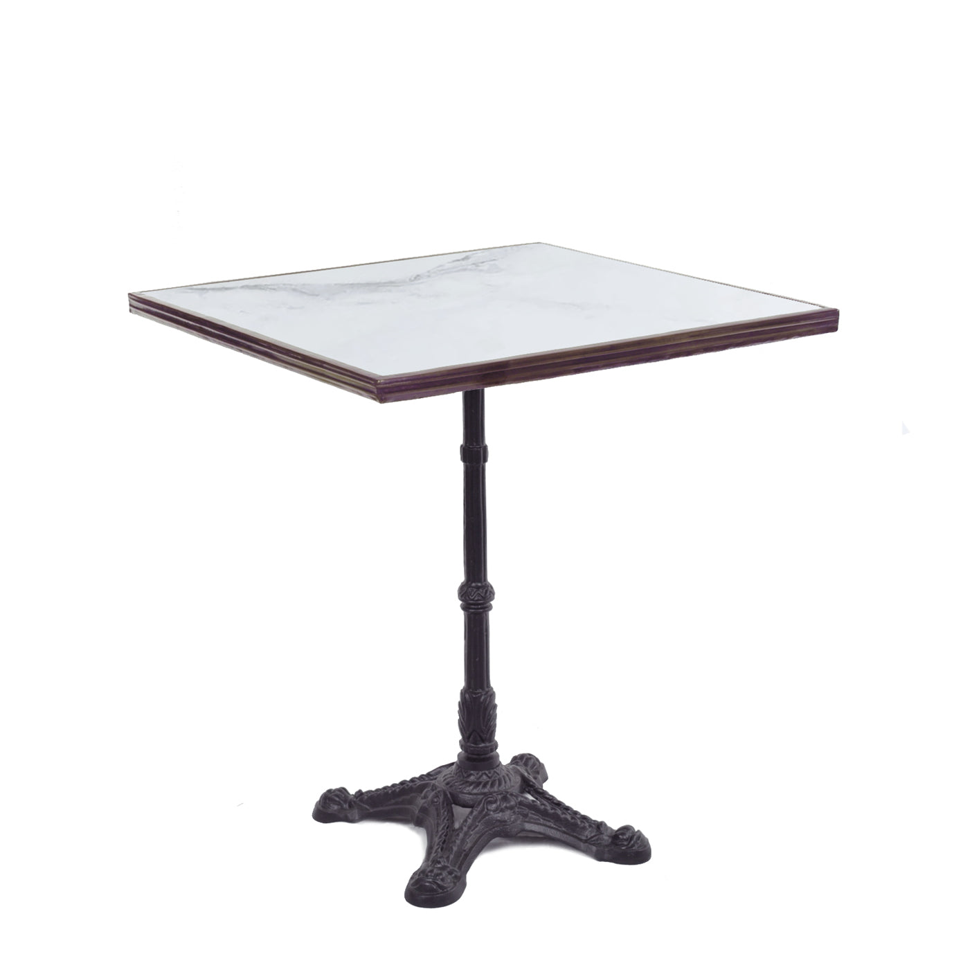 Our Ceramic Faux-Marbre Bistro Tables have the look of natural marble and are ideal for hospitality use. Ceramics are a stronger, more durable option than marble. Each piece is made from compressed natural stone and fired at a temperature over 2,200°F (1200°C). The result is a nonporous stone, so it is stain-proof and scratch-resistant. It is also heat and UV-resistant. Ceramic never needs to be sealed, nor does it absorb liquids, making it ideal for restaurant and bar use. It is also almost indistinguishable from real stone and can remain outdoors.