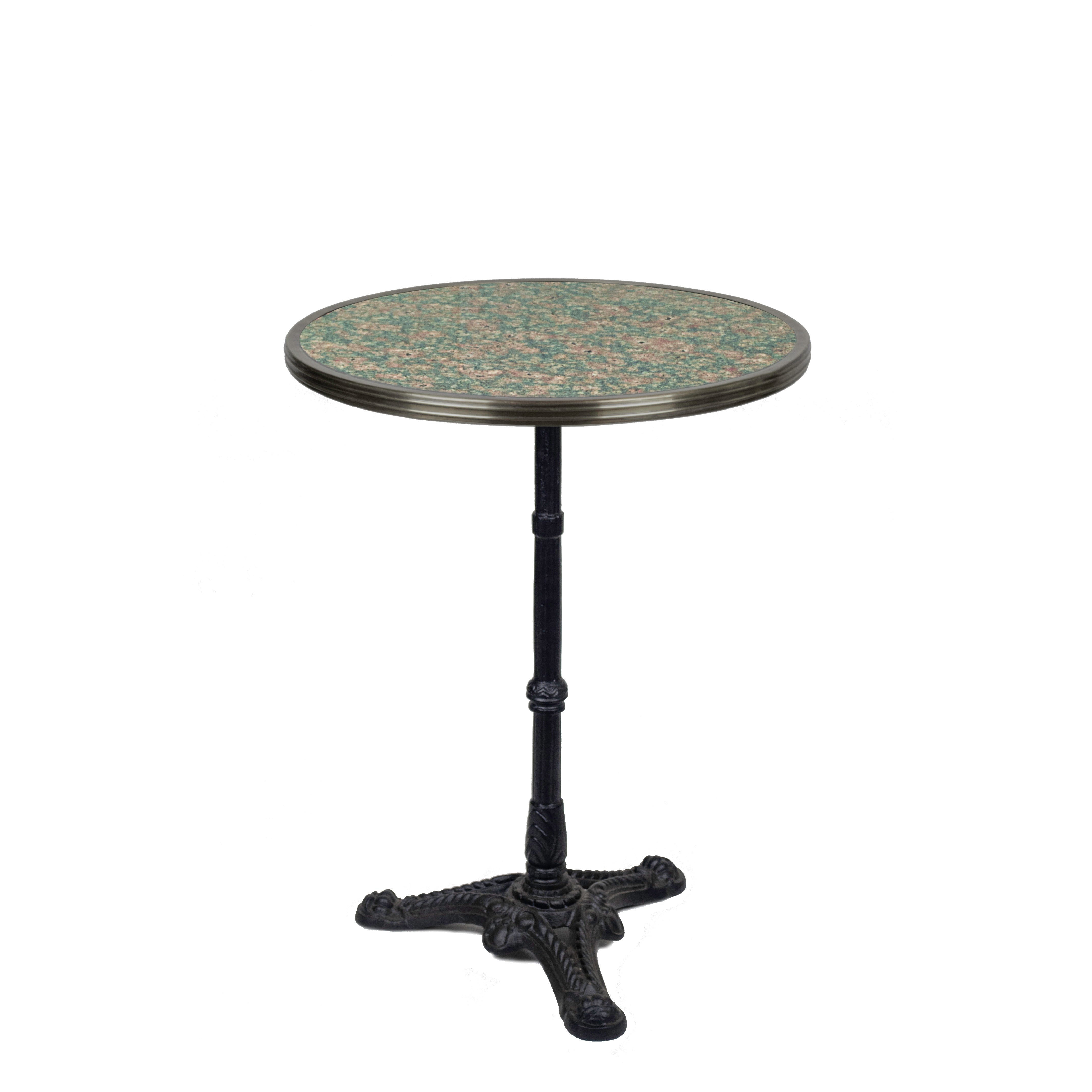 Made famous during Paris' Belle Époque, bistro tables continue to be used in restaurants and bistros throughout France and other parts of Europe. These solid granite top and cast iron base tables are constructed in the same manner as they were over 100 years ago.