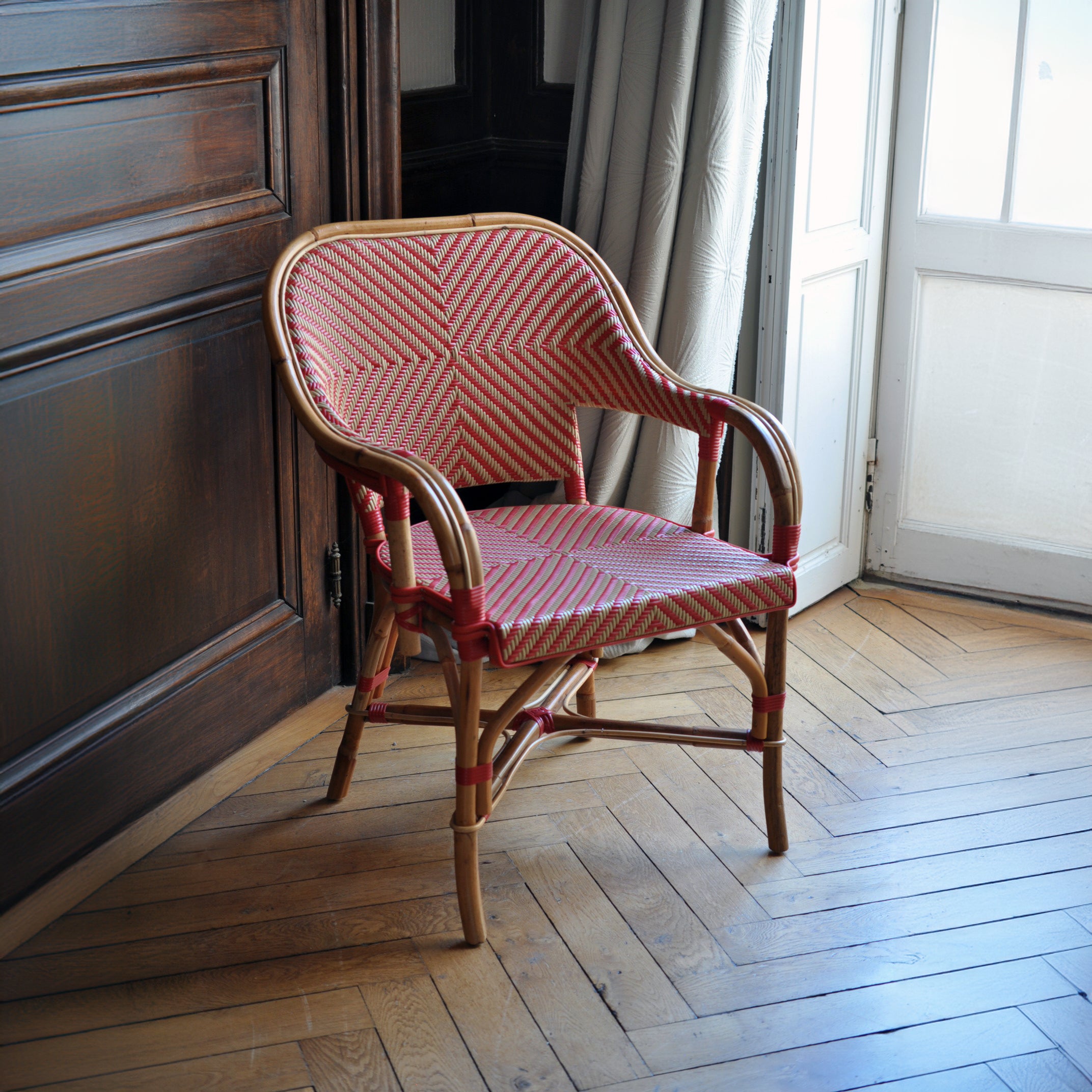Cannes French Bistro Rattan Armchair - Reversed Diamonds, Large - Gold/Red