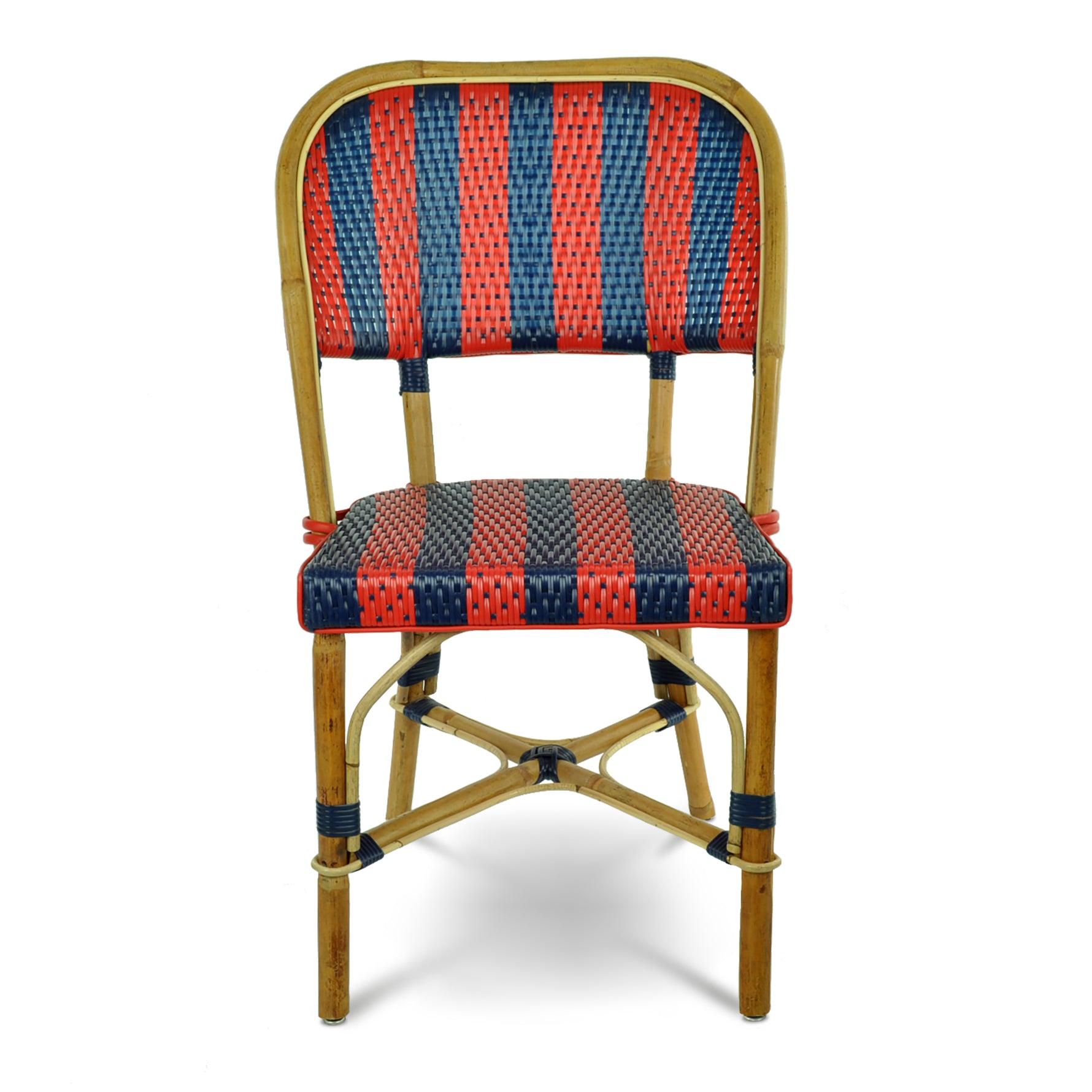 Biarritz French Bistro Rattan Chair - Arrows with Stripes - Navy Blue/Red