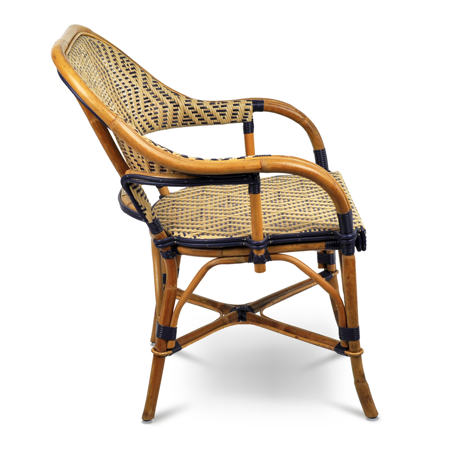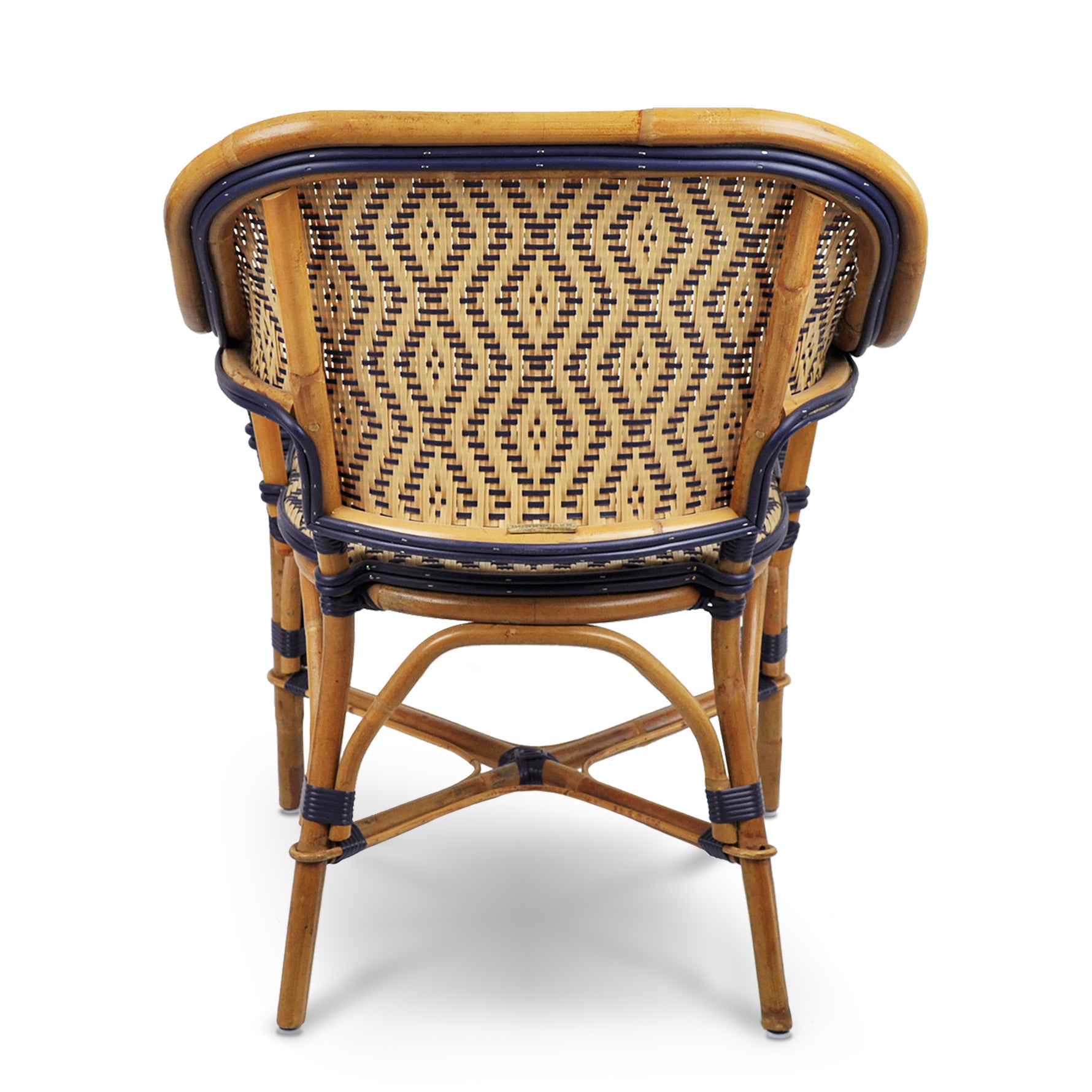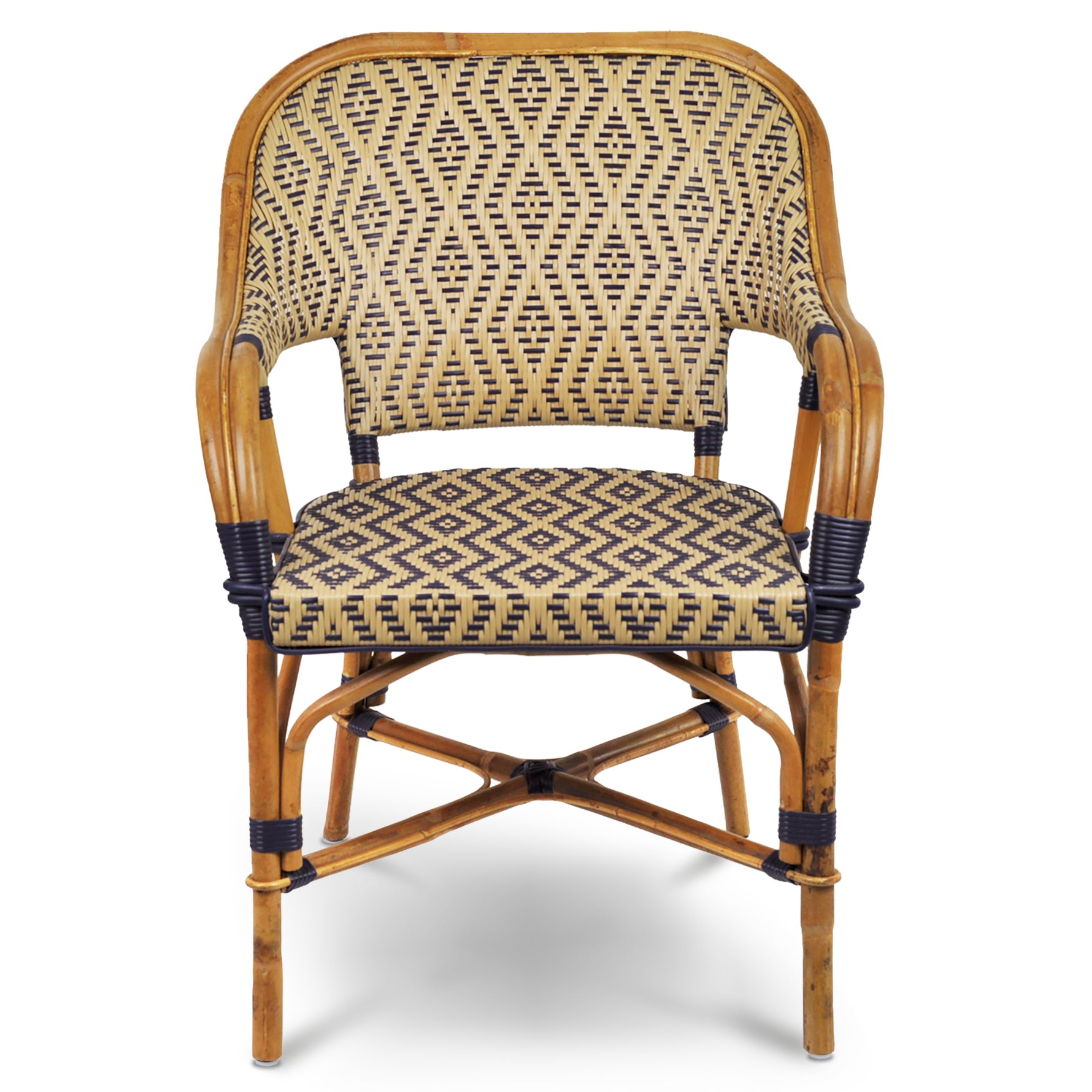Cannes French Bistro Rattan Armchair - Small Diamonds - Gold/Navy Blue