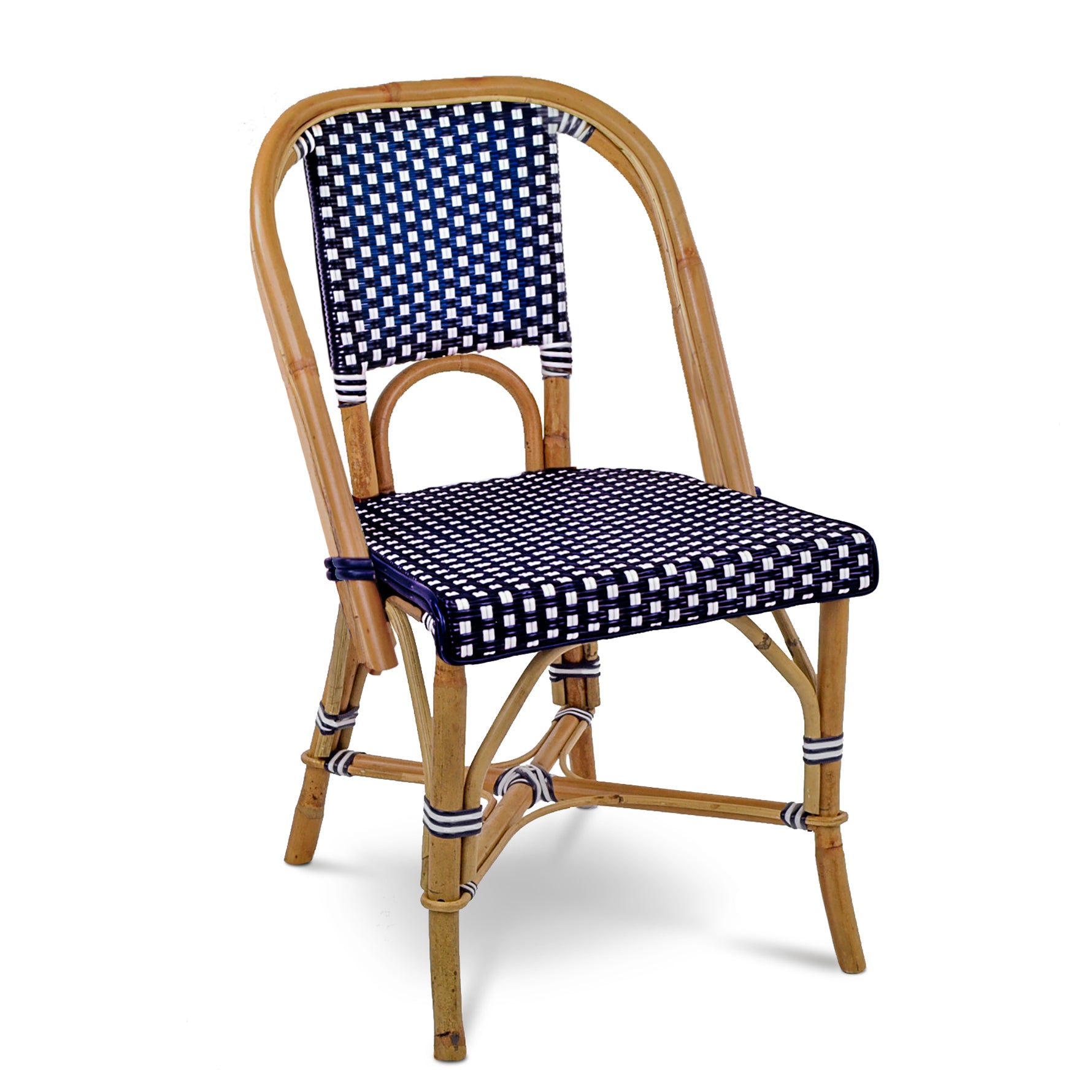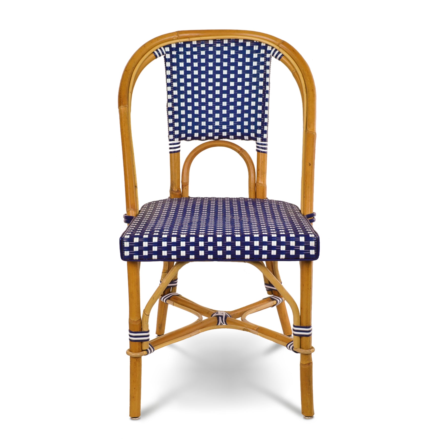 Lyon French Bistro Rattan Chair - Squares, Small - Navy Blue/White