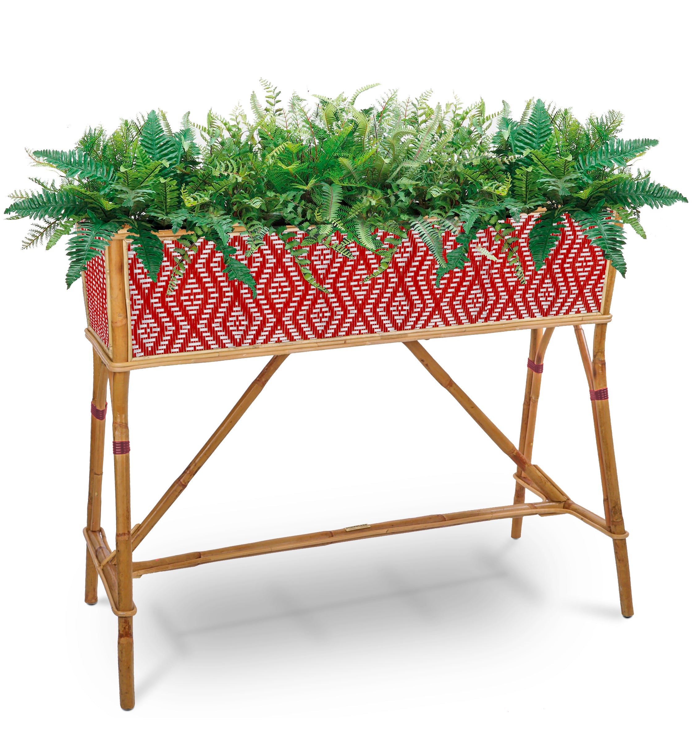 Lyon French Bistro Rattan Planter with Stand (Flower Box) - Diamonds, Small - Red/White