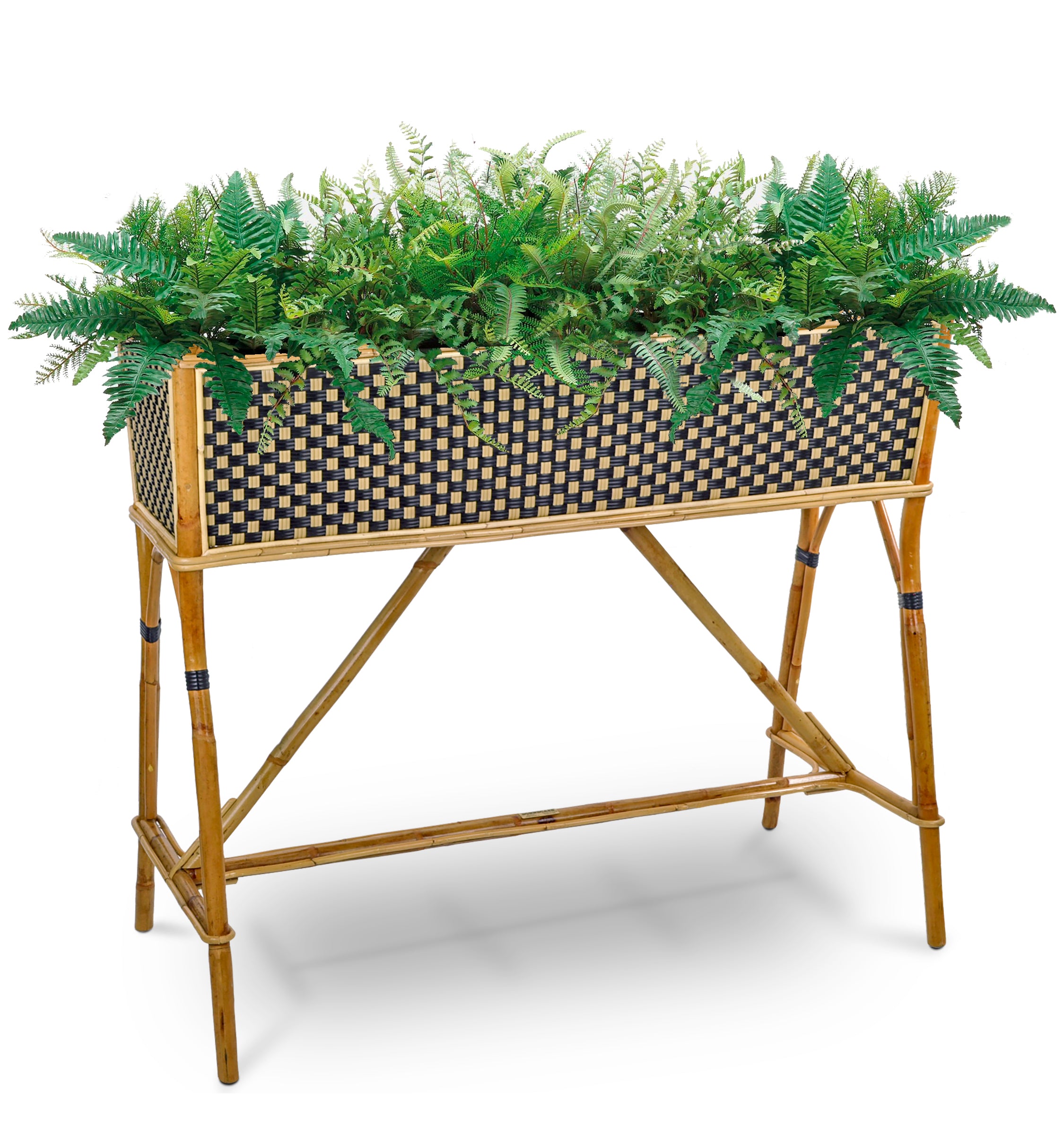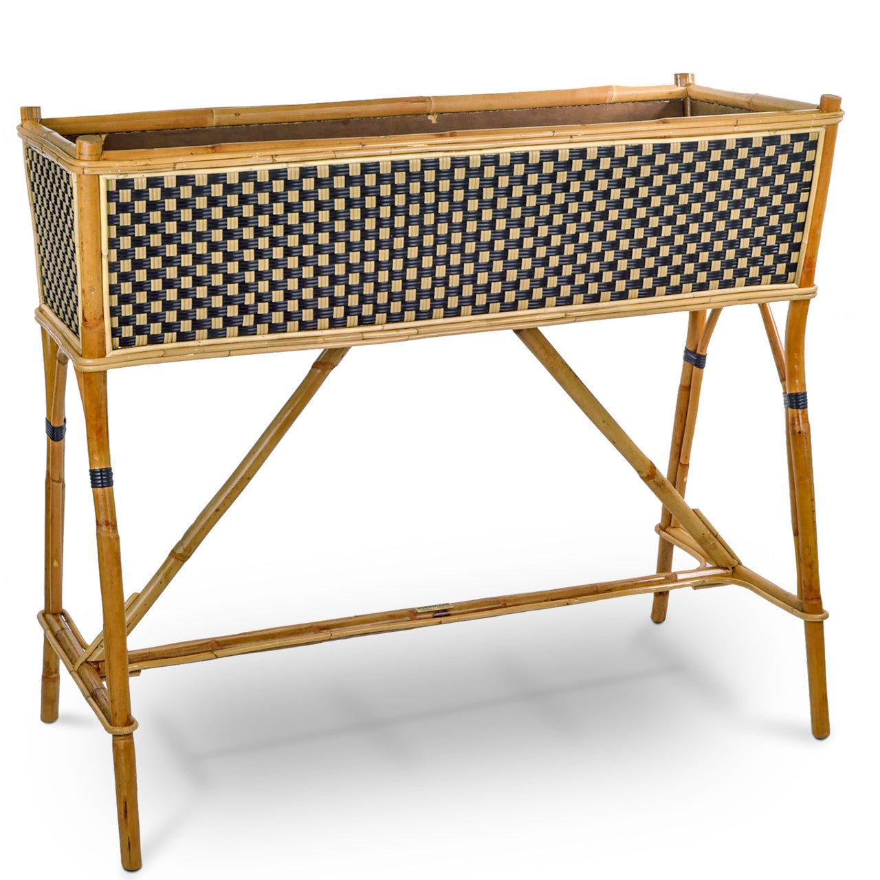 Lyon French Bistro Rattan Planter with Stand (Flower Box) - Squares, Large - Gold/Black