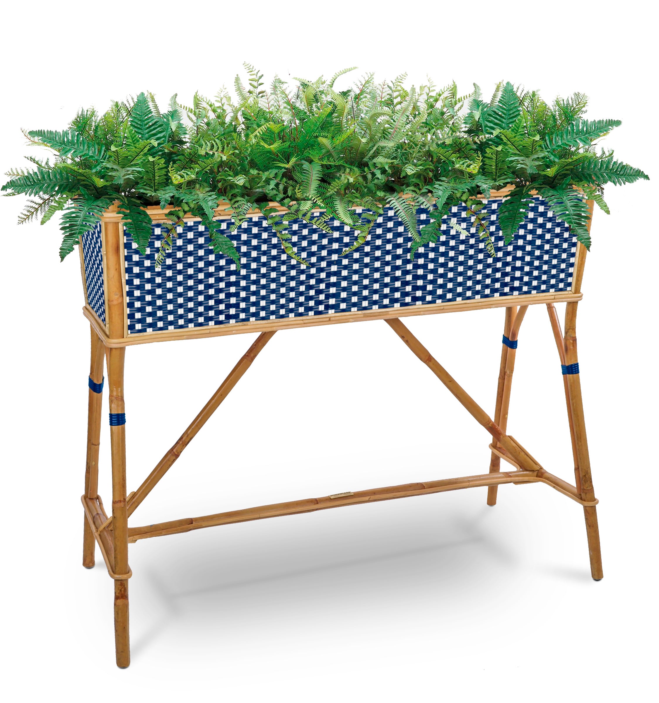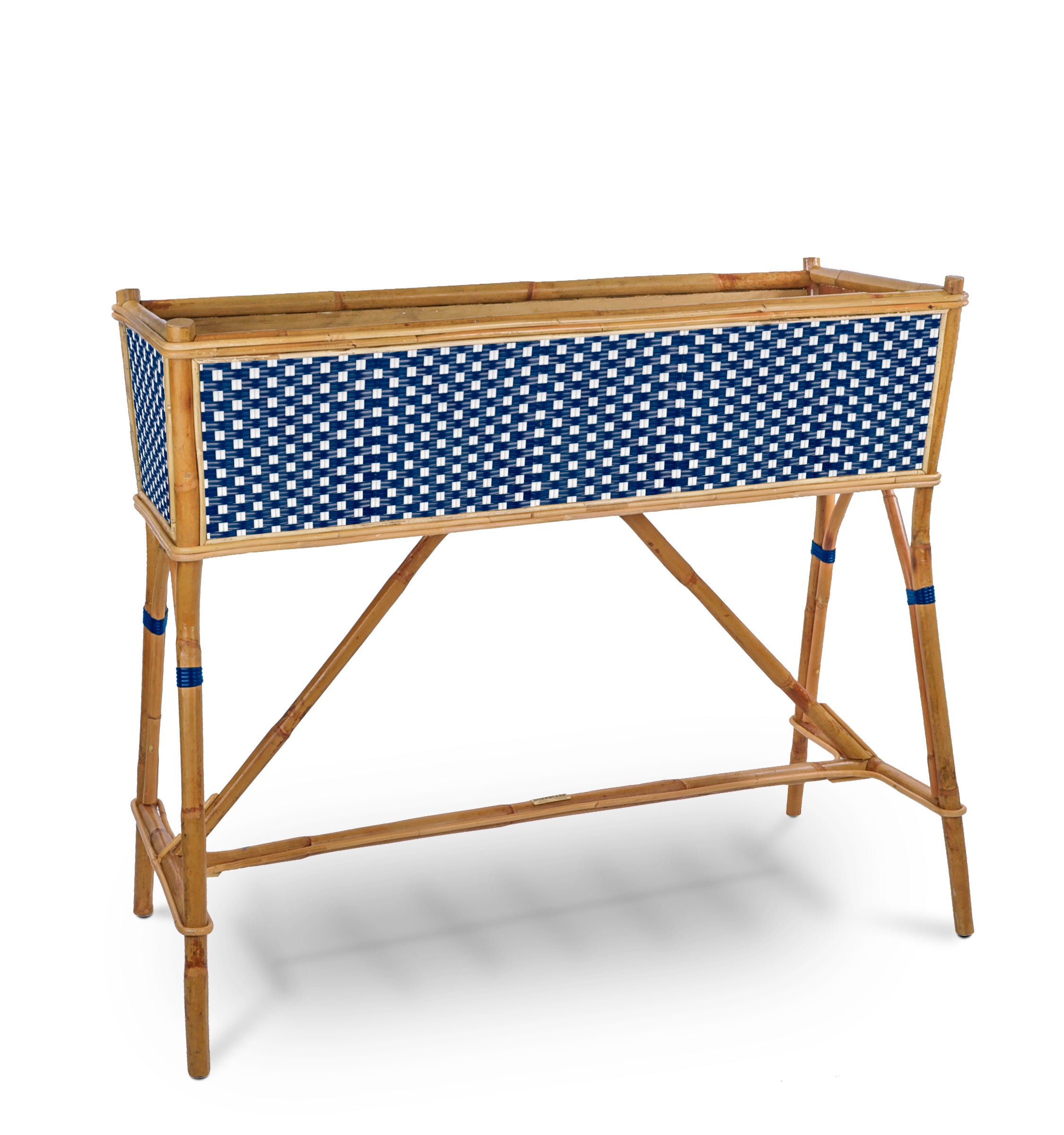 Lyon French Bistro Rattan Planter with Stand (Flower Box) - Squares, Small - Navy Blue/White
