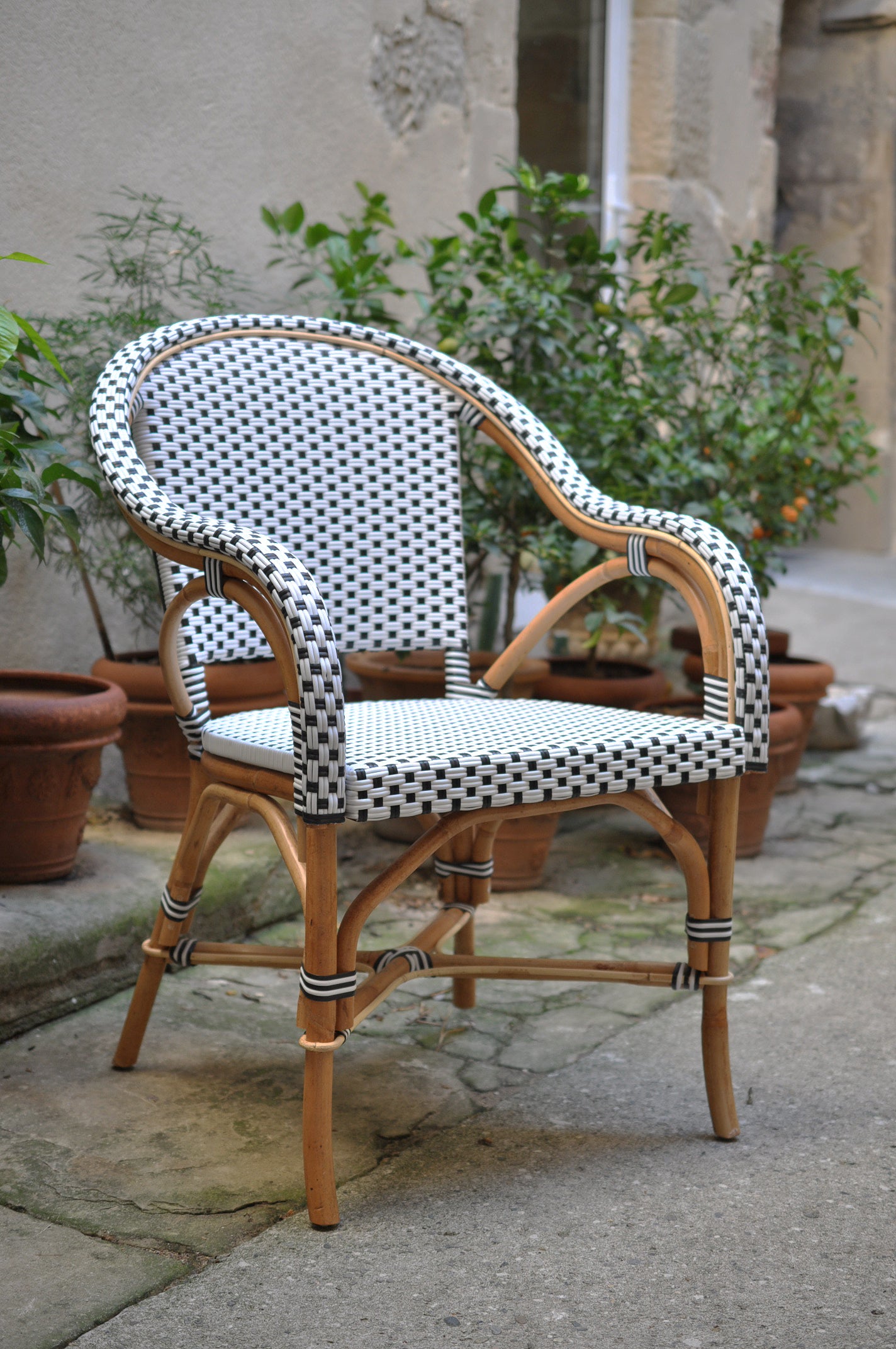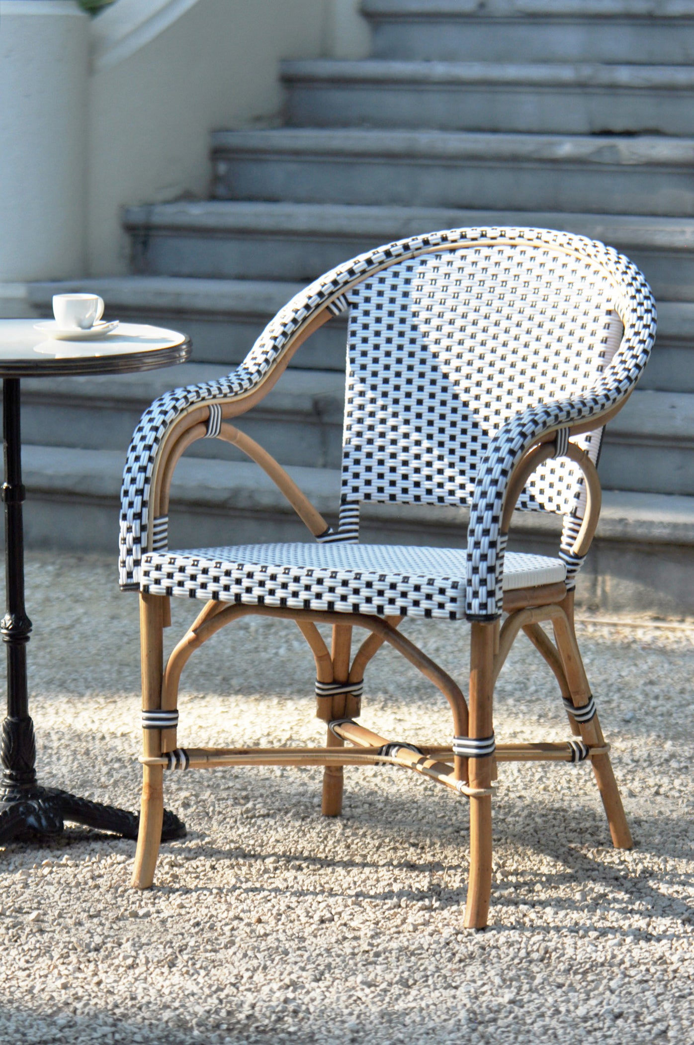 Paris French Bistro Rattan Armchair - Squares, Small - White/Black - Multi-Weave - White/Black