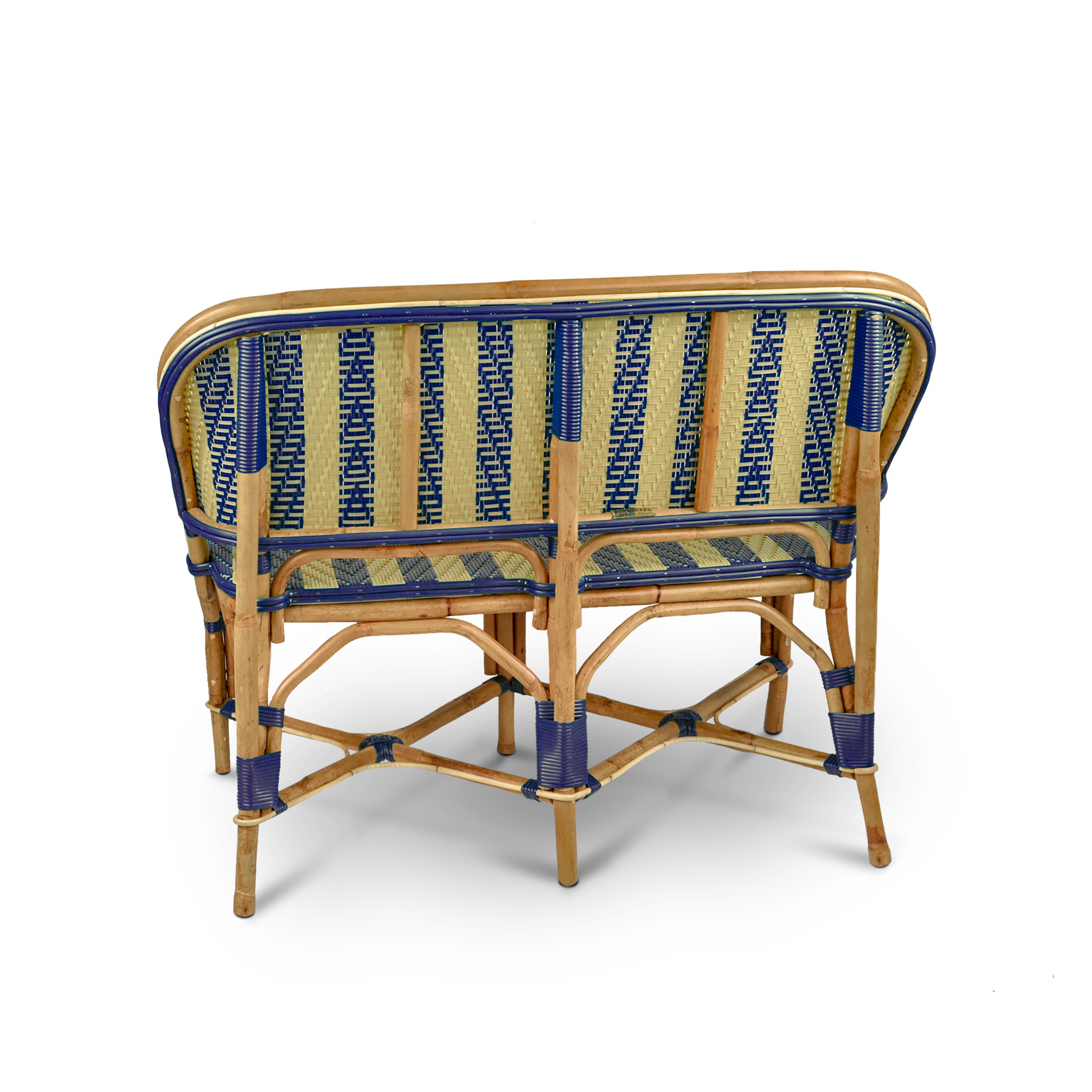 Valence French Bistro Rattan Banquette/Bench, 2-Seat, Arrows with Stripes - Navy Blue/Gold