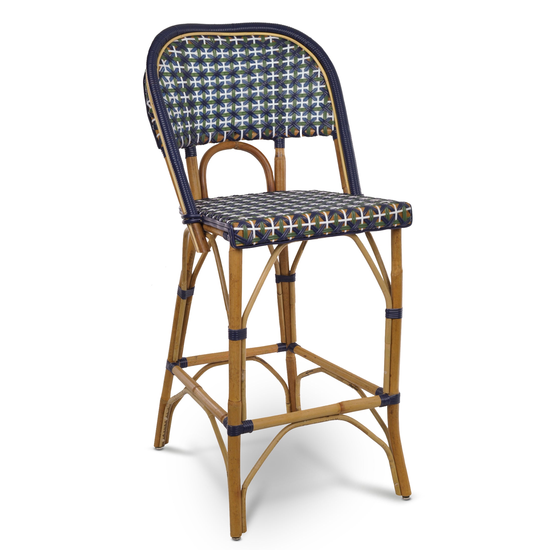Valence French Bistro Rattan Bar Chair - Crosses - Green/Navy Blue/White - Simple Weave - Navy Blue
