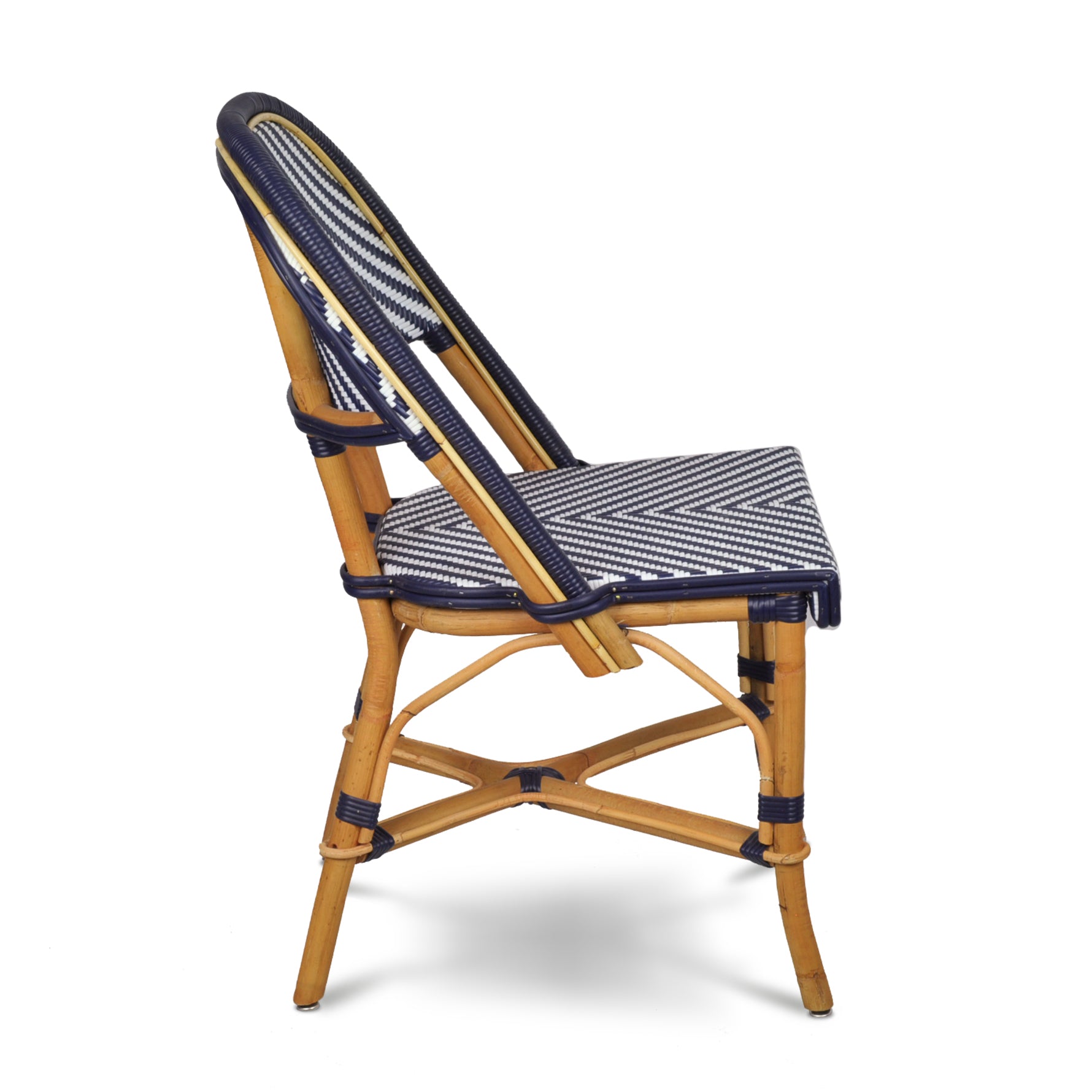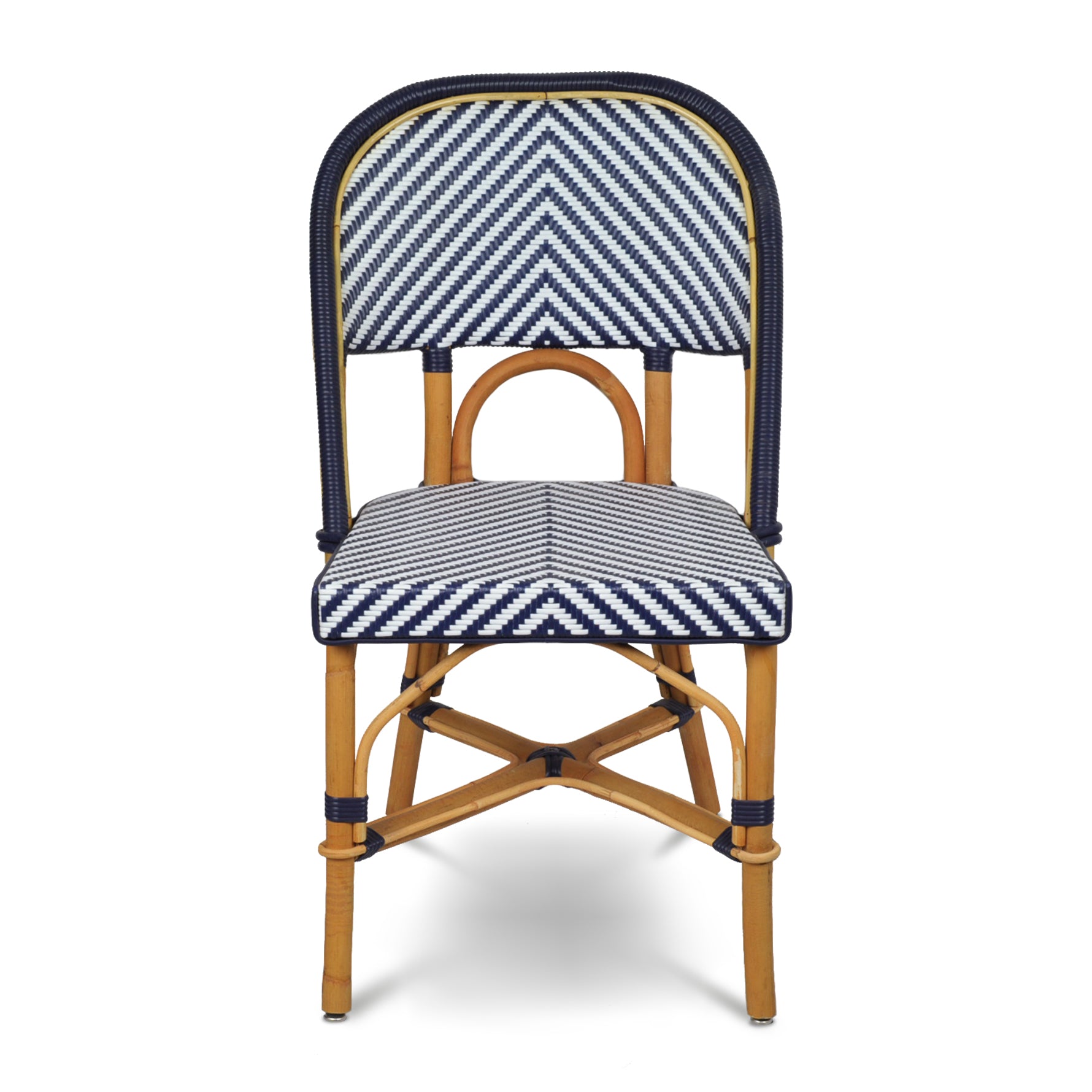 Valence French Bistro Rattan Chair - Herringbone - Navy Blue/White - Simple Weave - Navy Blue
