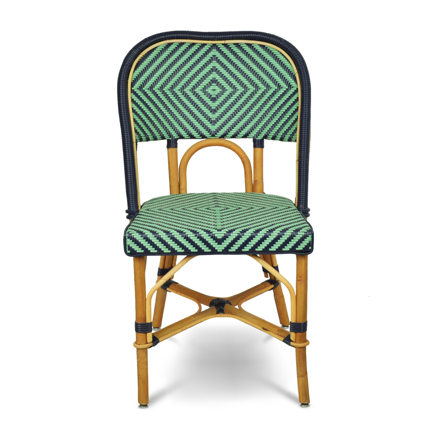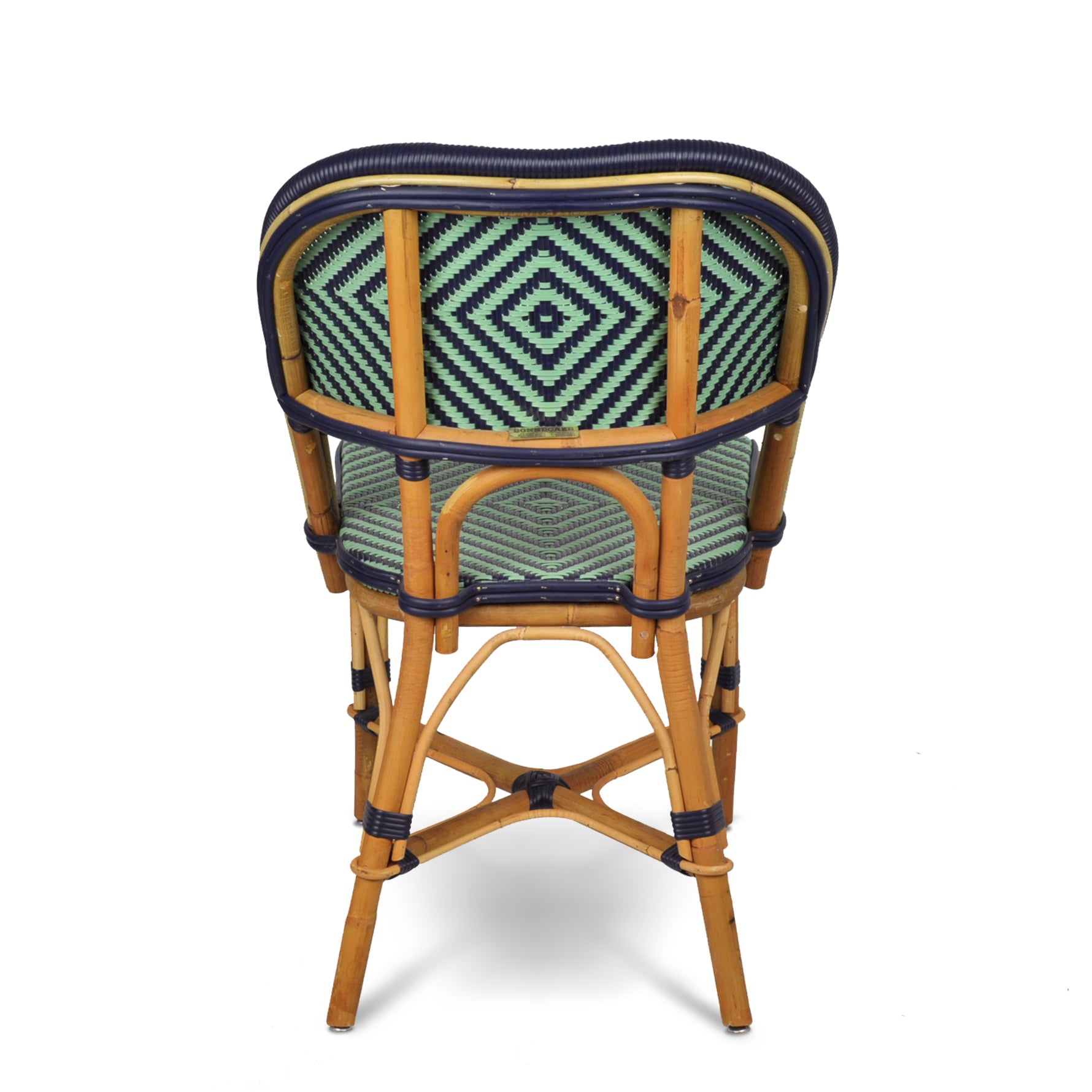 Valence French Bistro Rattan Chair - Diamonds, Large - Navy Blue/Jade - Simple Weave - Navy Blue