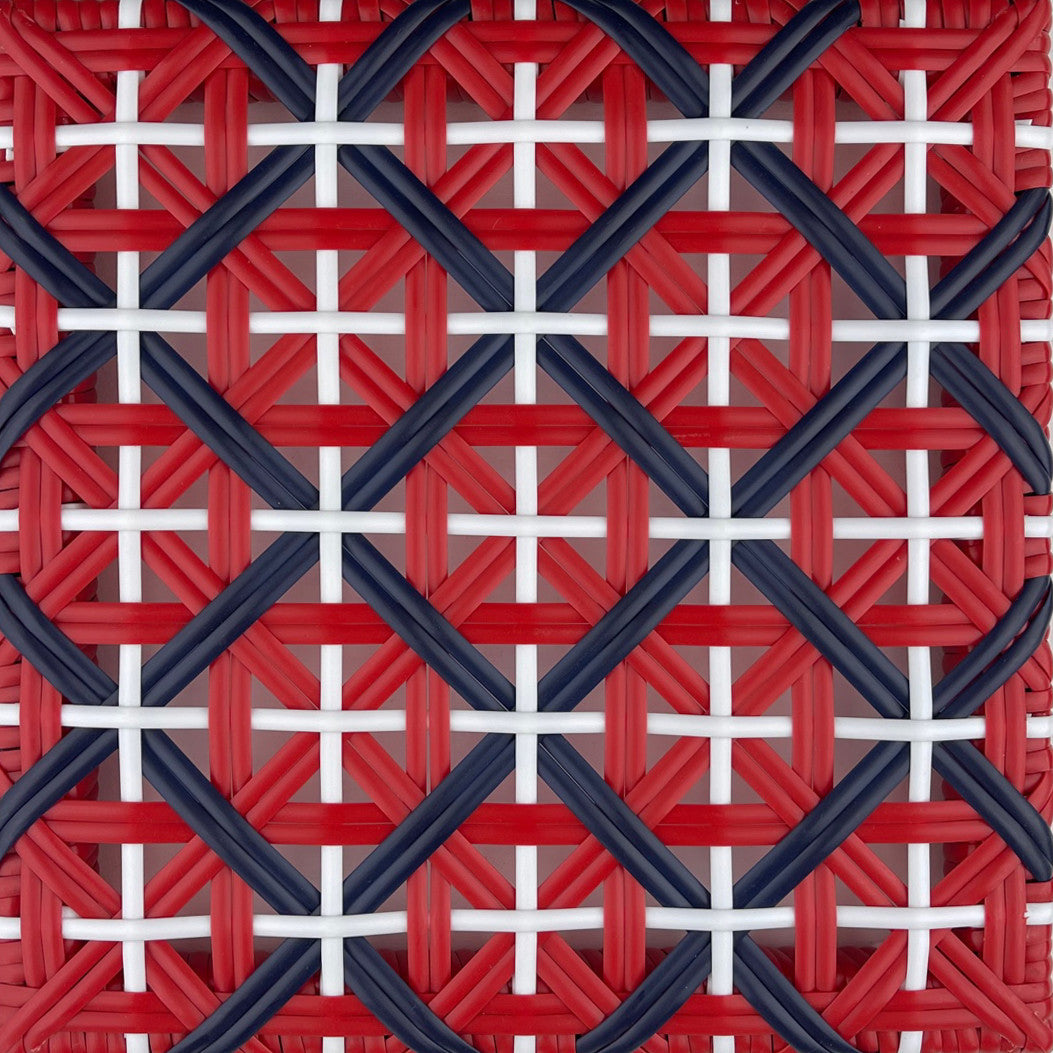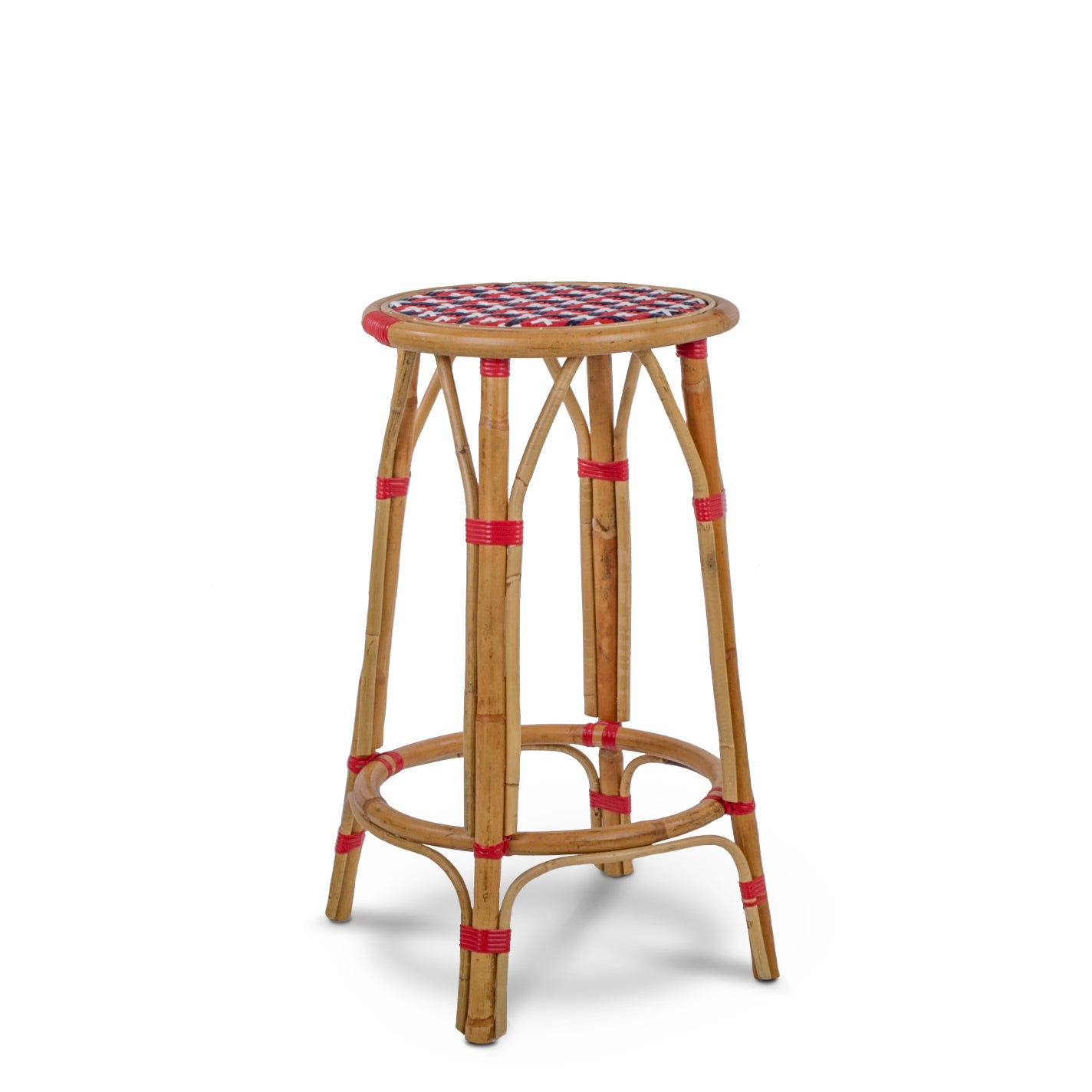 Valence French Bistro Rattan Counter Stool - Crosses - Red/Navy Blue/White