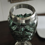 This is an exact reproduction of an antique sugar cube holder used to hold sugar in preparing a traditional French or Swiss absinthe. Every detail has been meticulously replicated from the original, from the waves in the mouth-blown glass to the beading on the base and stem. The lid is topped with an acorn, associated with good luck and prosperity.