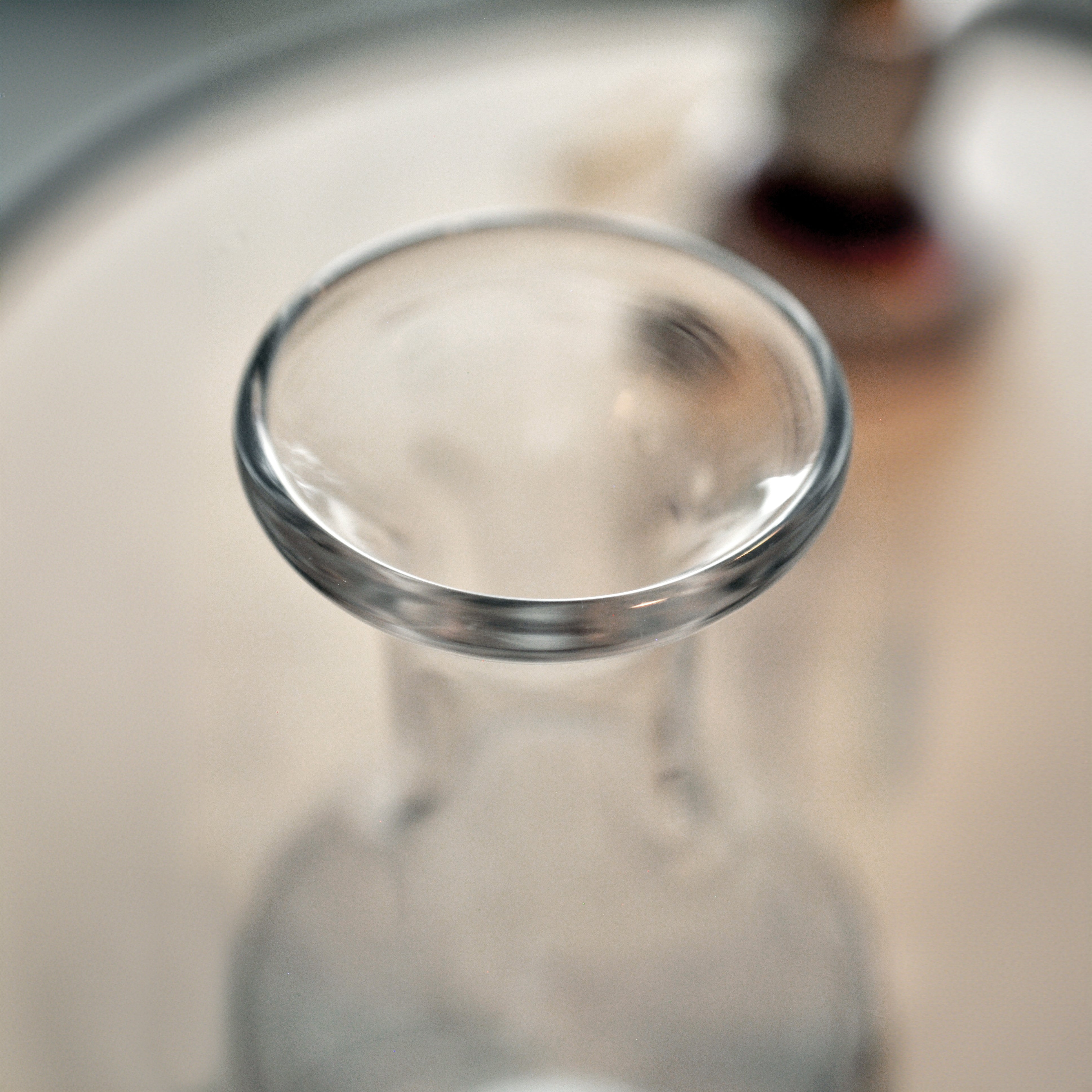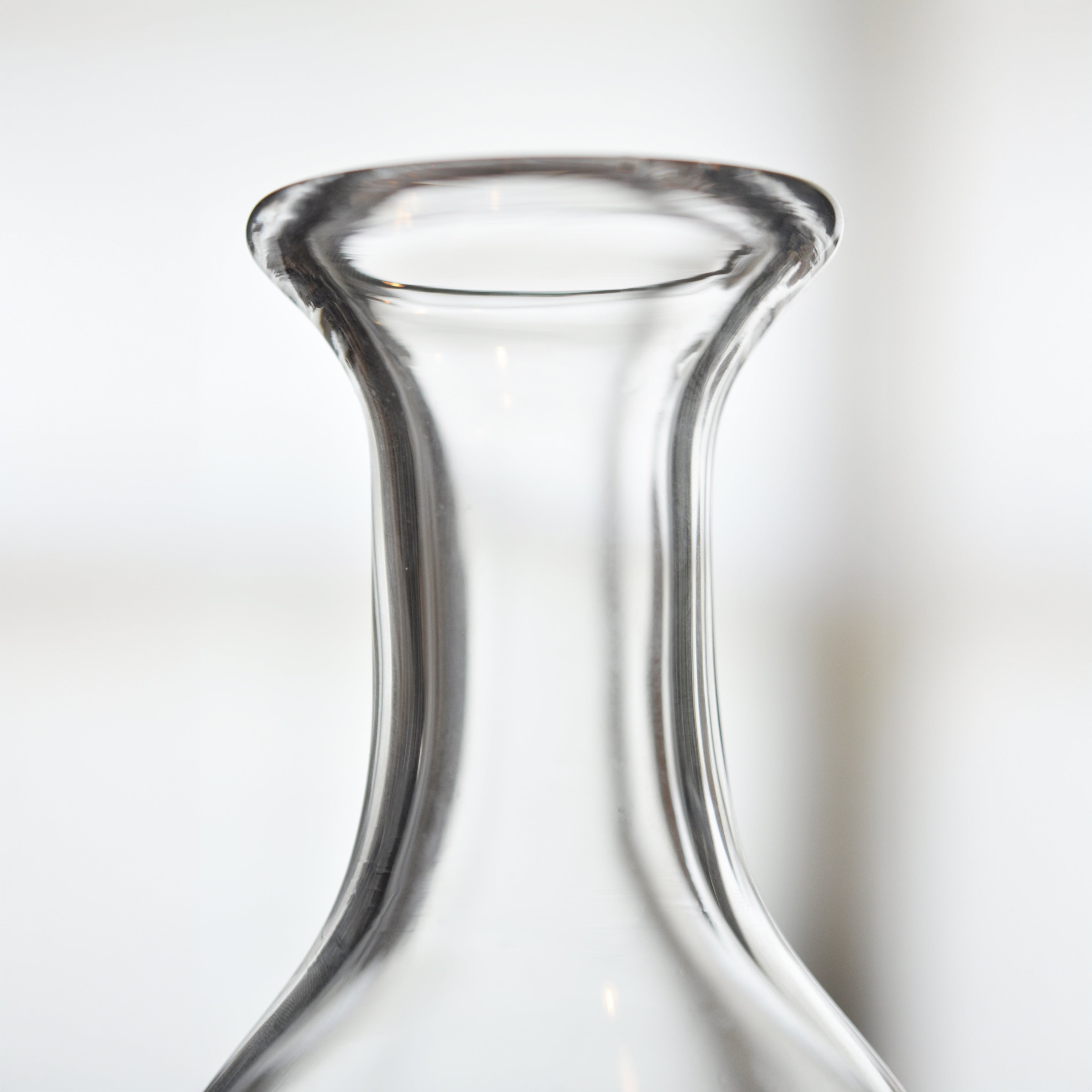 This carafe was designed after similar pieces found in European bars and bistros from the 19th and early 20th centuries. Customers commonly used a carafe to prepare their drinks, especially for making absinthe. In addition to holding water, carafes were also frequently used as promotional tools by alcohol manufacturers. Using a carafe to add water to absinthe was the preferred method during the Belle Époque, following the correct technique of slowly pouring or dripping water onto a sugar cube until it completely dissolves and mixes with the absinthe.