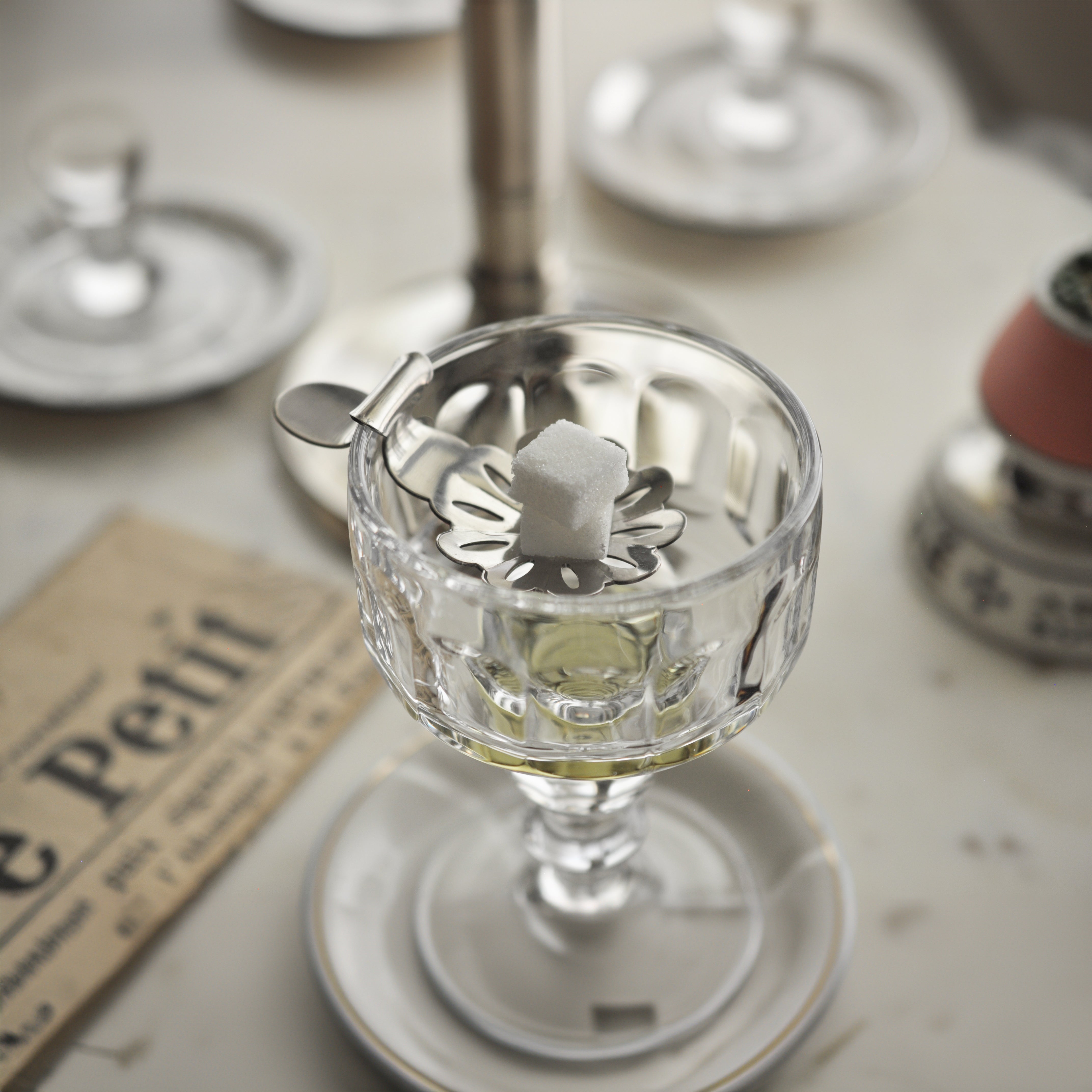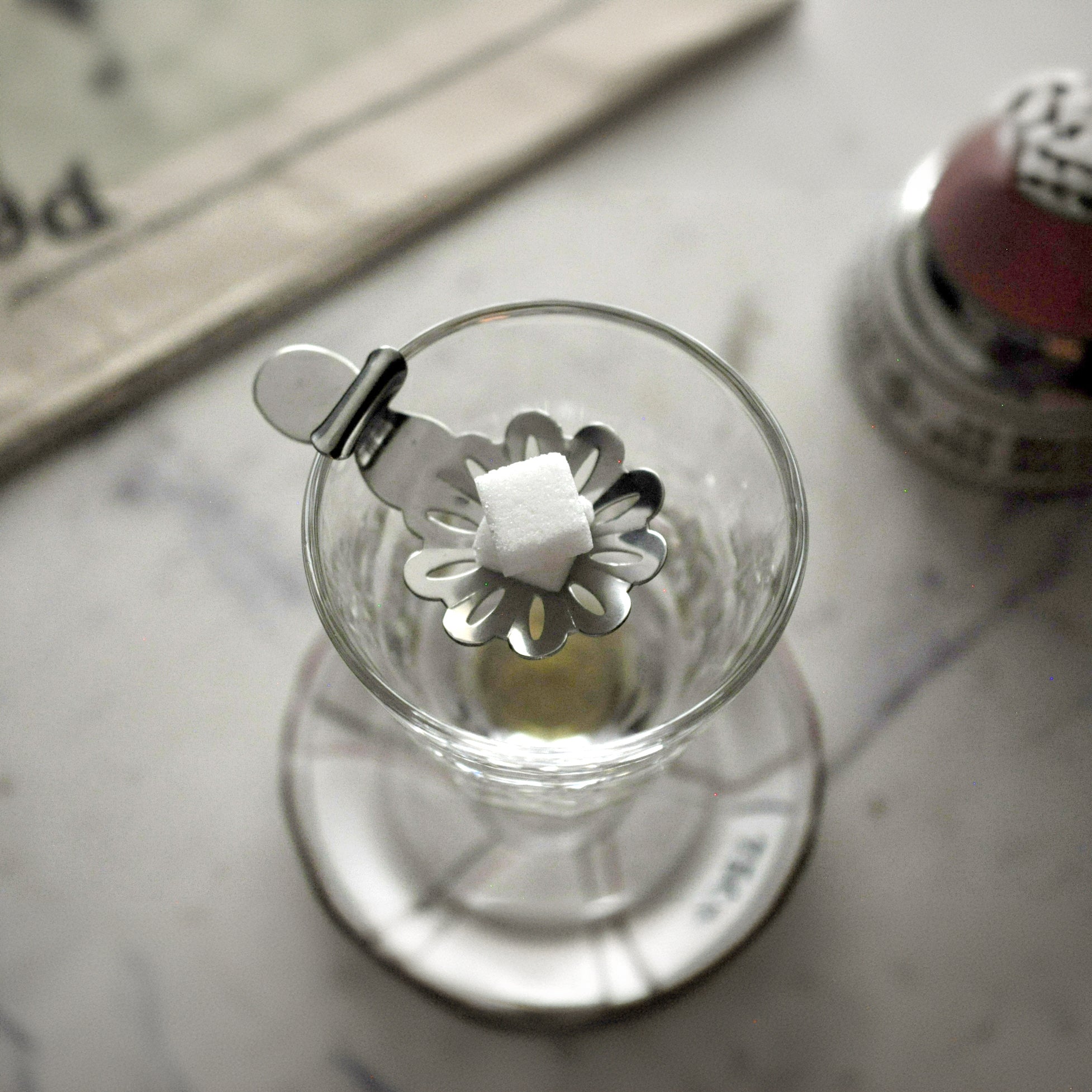 Once the sugar has dissolved from the spoon, the absinthe can be sampled, and the strength and sweetness can be adjusted by adding more water or sugar to taste. The mix ratio depends on one’s liking - usually 1-part absinthe to 3 to 5 parts water.