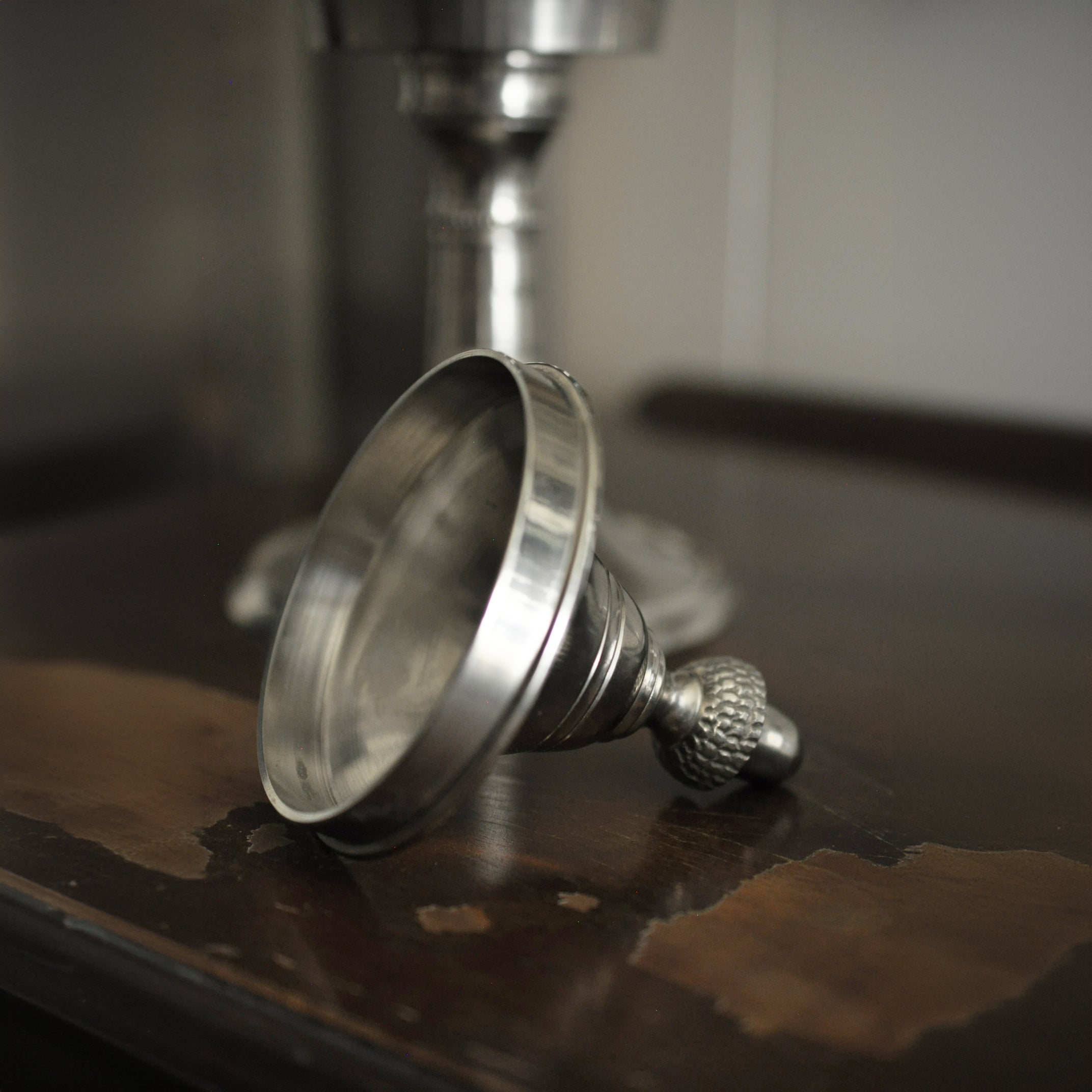 After absinthe was banned in France in 1915, the holders soon became no longer regarded as a specific item linked to absinthe. Once used in bars, they became containers for storing various other items. Because they continued to be used in other ways, most would eventually break and be discarded. Very few have remained intact with their original glass., which is why finding one with its original glass bowl intact is quite rare.