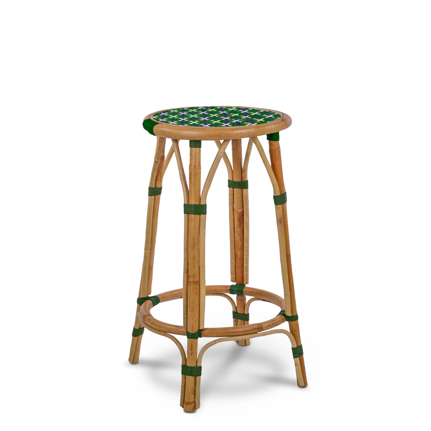 Valence French Bistro Rattan Counter Stool - Crosses - Green/Navy Blue/White